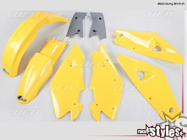 Plastik-Kit gelb für diverse Husqvarna CR WR 125 250 300 Modelle (Passt nicht an SM, SMR, SMS und SMR/R - 125 /450/510 - Modelle). Der Kit setzt sich wie folgt zusammen: