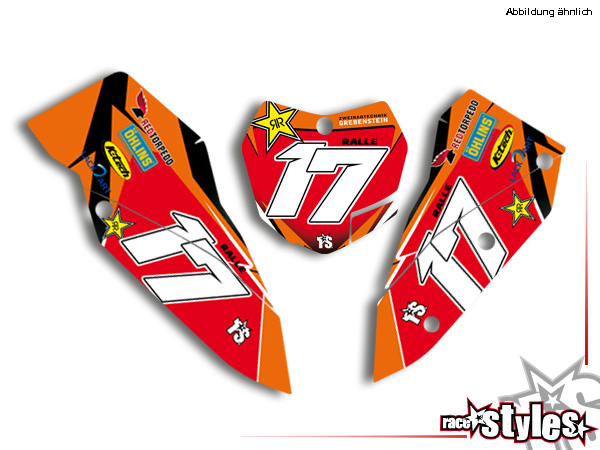 Startnummernfelder Dekor-Kit passend für KTM SX / SX-F (2007-2010) und EXC / EXC-F / SMR (2008-2011). inkl. Luftfilterkasten li./re.