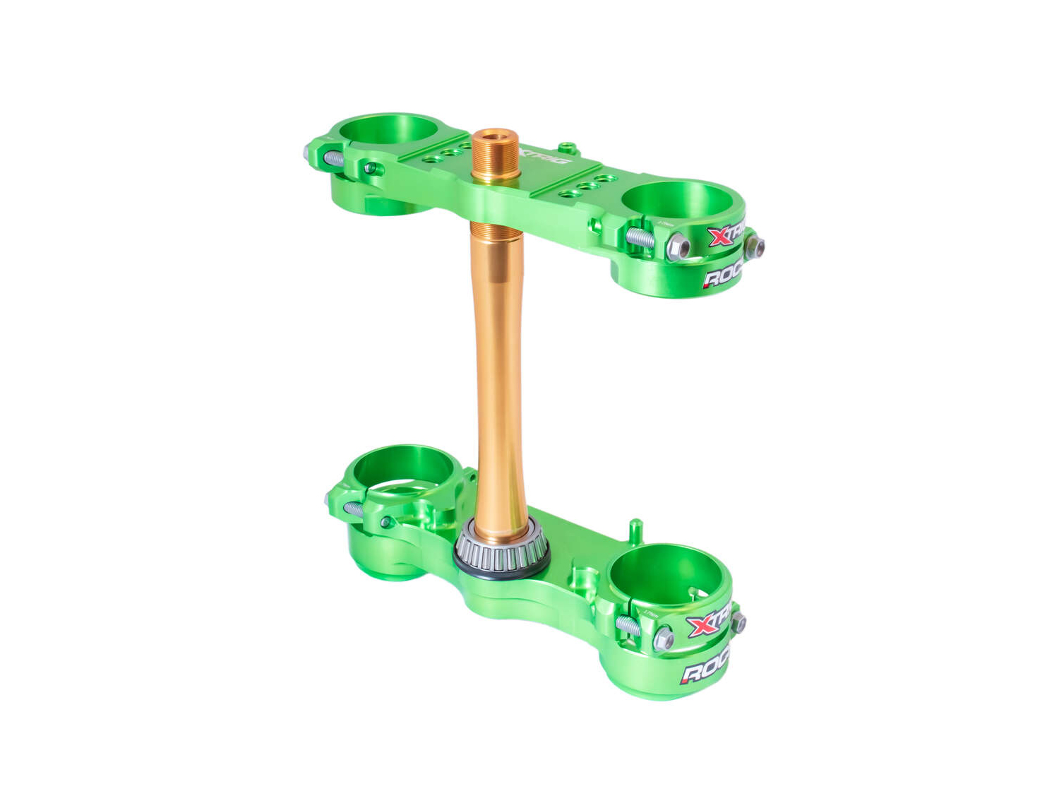 Das Revolutionary Opposing Clamp System kurz ROCS war eine der spektakulärsten und aufwändigsten Entwicklungen von XTRIG in den letzten Jahren. Die Vorteile dieses Systems im Vergleich zu einer konventionellen Gabelbrücke sind die geringere Verformung der Gabelstandrohre im Klemmbereich, was sich merklich auf das Ansprechverhalten der Gabel auswirkt. Aber auch die Konstruktion mit den beiden gegenüberliegenden Klemmschellen die durch den Selbsthemmungseffekt mehr Sicherheit gegen das Verdrehen der Gabel gewährleistet.