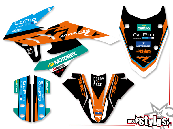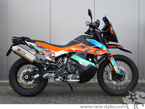Description: basic graphic-kit for KTM 790 / 890 ADVENTURE R / 890 SMT (2019-2026). This kit includes the following decals: fork protectors le./ri., fender front/rear and rad covers le./ri.