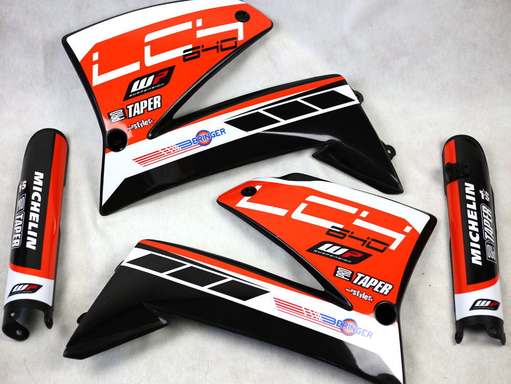 Plastik-KIT schwarz passend für KTM LC4 620 / 640 / 660 + Dekor in Offroad Folie wie abgebildet.