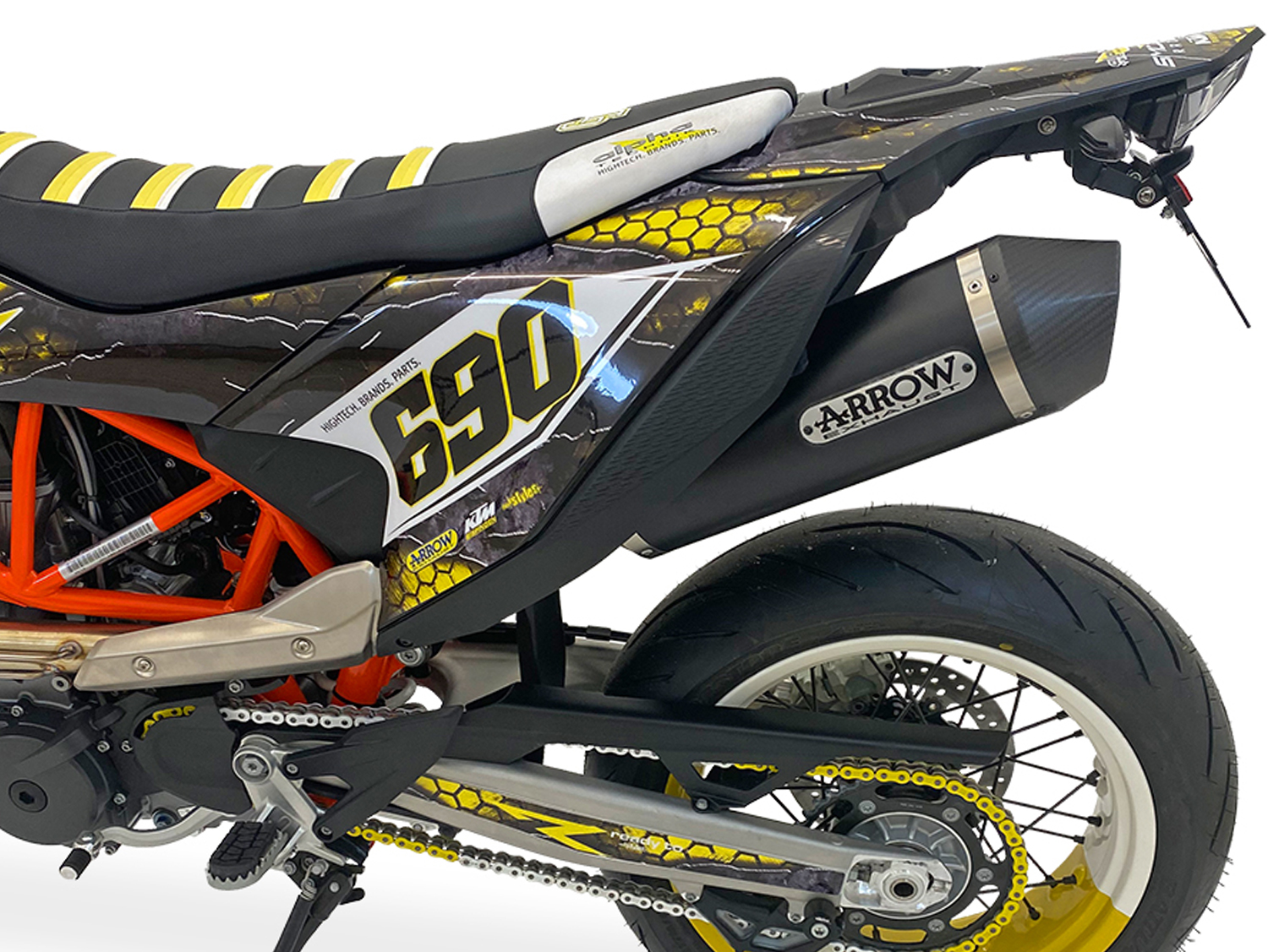 ARROW DARK RACE-TECH Endschalldämpfer mit schwarzer Aluminium-Hülle und Carbon-Endkappe, mit dB-Killer und Straßenzulassung. Passend für GASGAS 700 SM / ENDURO (2022-2024), Euro 4 und Euro 5 Modelle. (Montage nur in Verbindung mit Arrow-Zwischenrohr AR-72156)